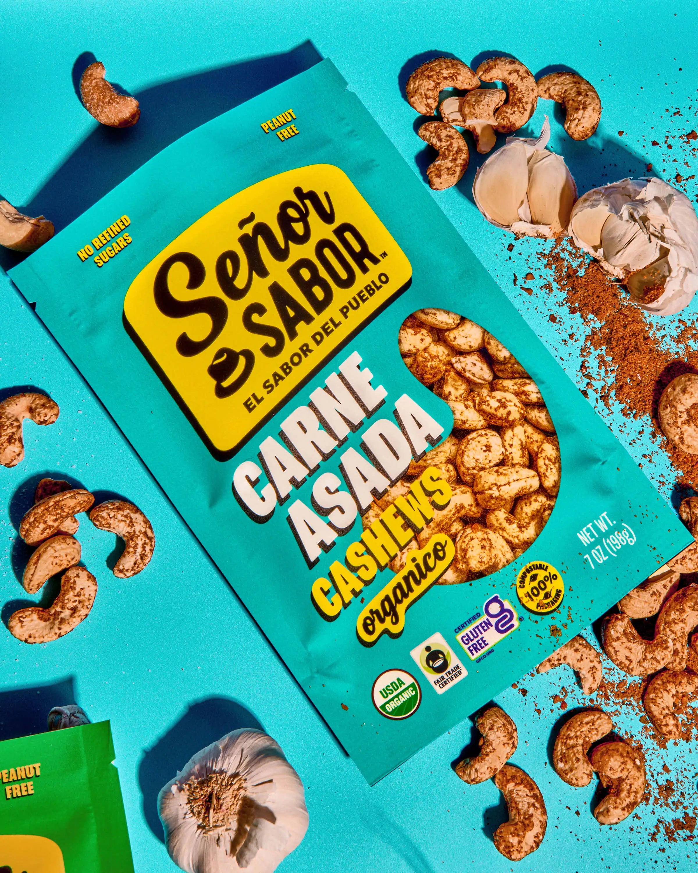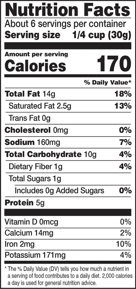 INGREDIENTS: Organic Dry Roasted Cashews, Ancho Chili Powder*, Red Chili Powder*, Garlic Powder*, Minced Garlic*, Onion Powder*, Minced Onion*, Smoked Paprika*, Oregano Powder*, Orange Juice Powder*, Lime Juice Powder*, Orange Peel*, Cumin*, Coriander*, Black Pepper*, Cayenne Powder*, Sea Salt.