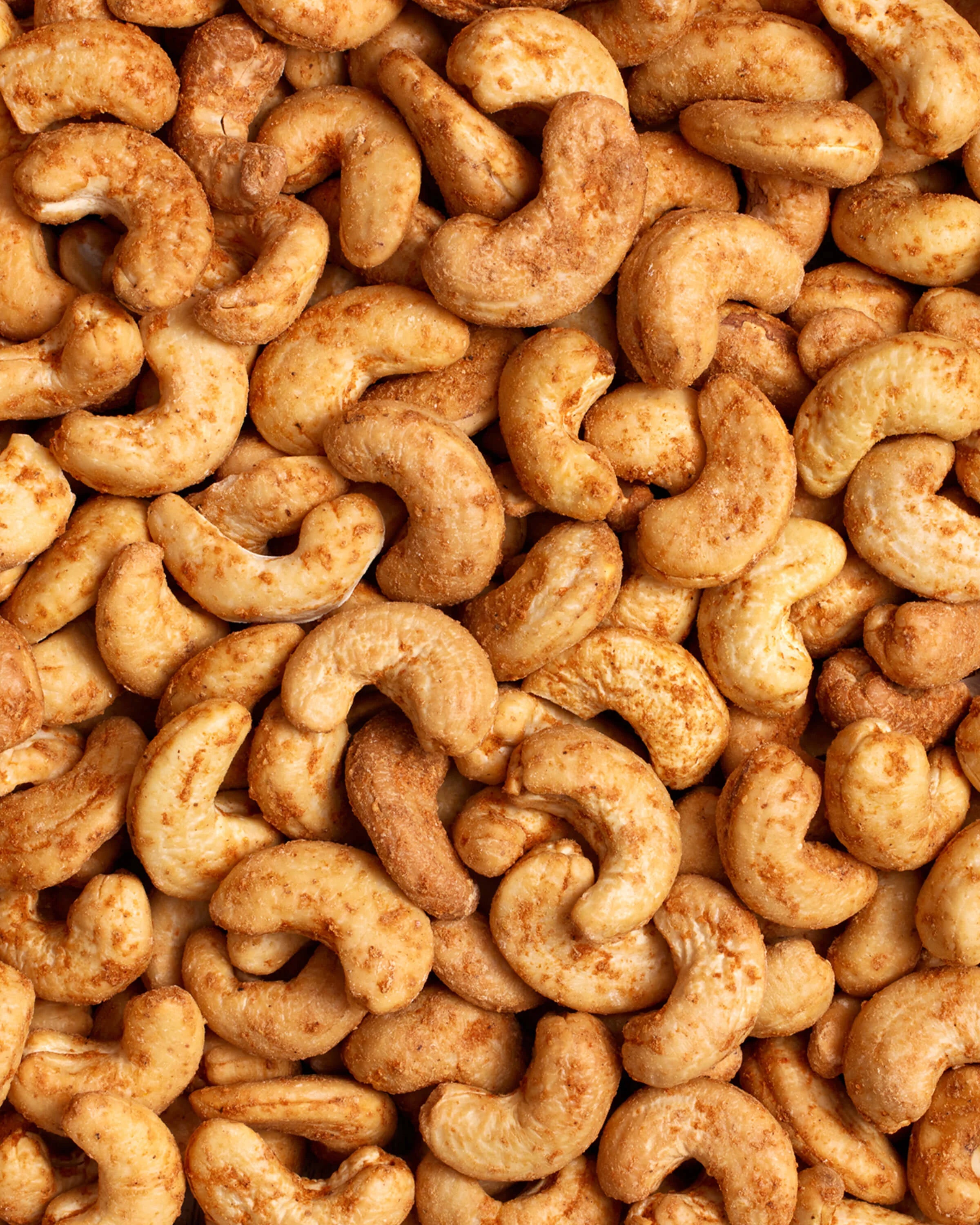 INGREDIENTS: Organic Dry Roasted Cashews, Cajun Powder* (Cayenne Powder*, Organic Chili Powder*), Sea Salt.