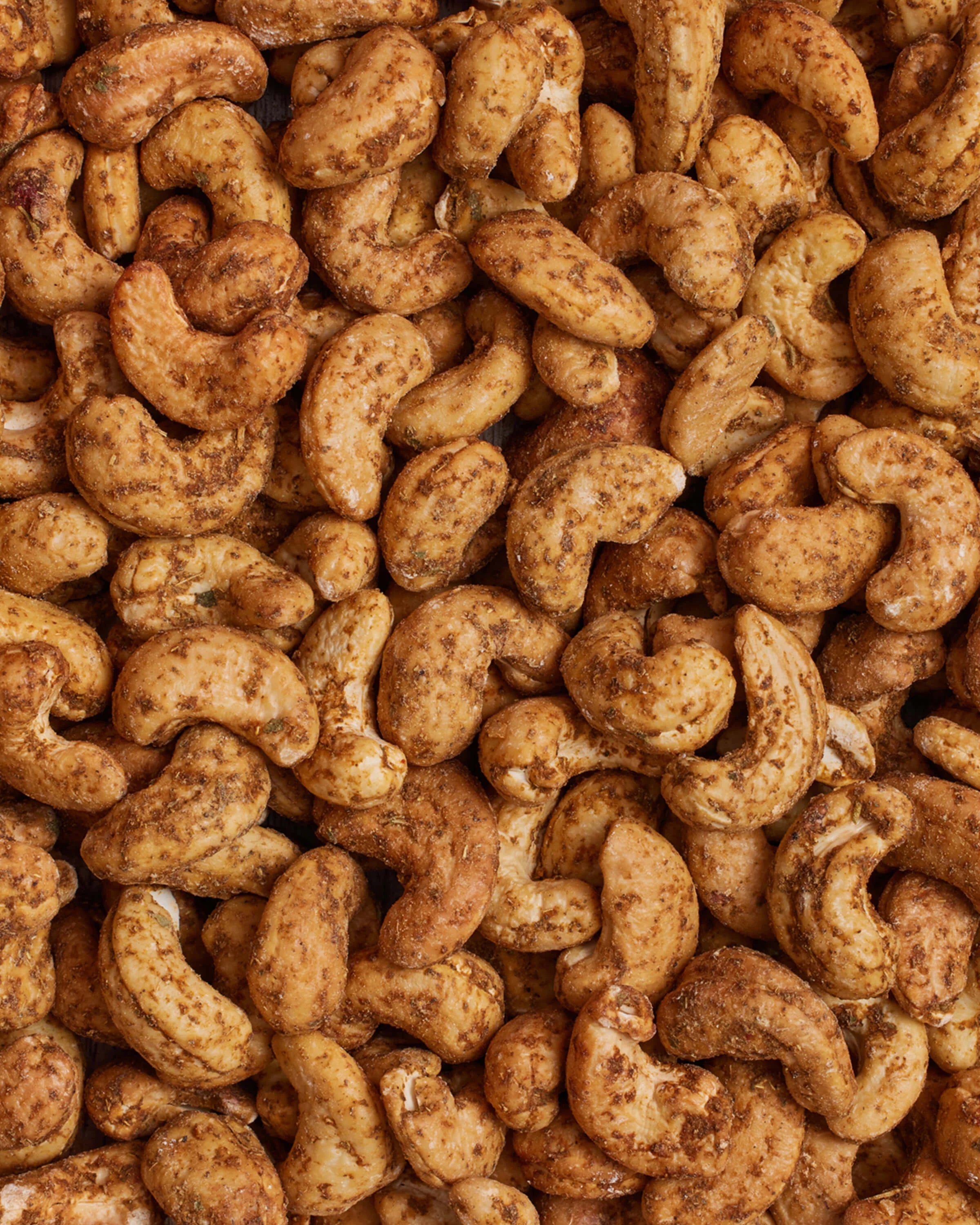 INGREDIENTS: Organic Dry Roasted Cashews, Oregano Powder*, Tomato Powder*, Nutritional Yeast*, Ground Fennel*, Onion Powder*, Garlic Powder*, Basil Powder*, Minced Onion*, Minced Garlic*, Parsley Powder*, Thyme Powder*, Maple Sugar*, Cayenne Powder*, Sea Salt